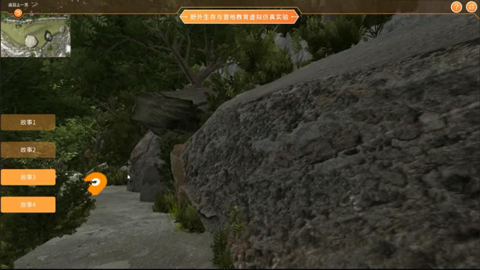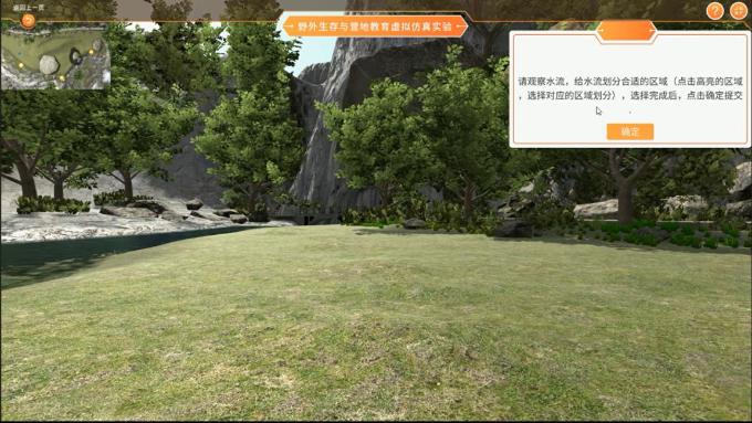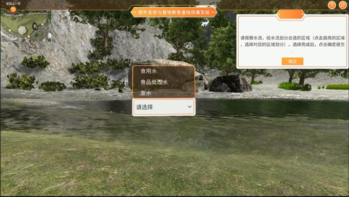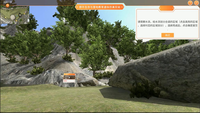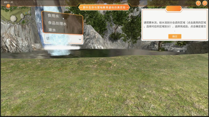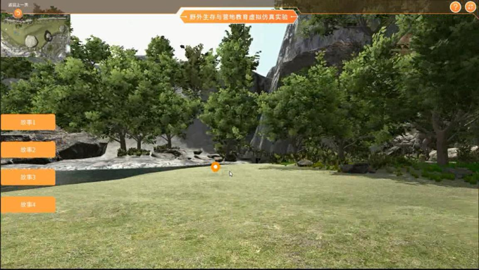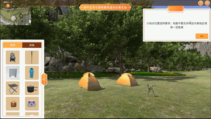 1) 让学生通过虚拟场景下户外营地选择和野外生存技巧的操作,掌握营地选择的风险控制和安全保障,同时,掌握一定的野外生存技巧。