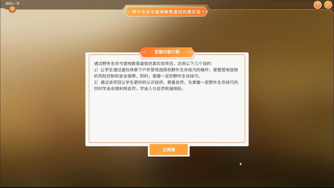 通过野外生存与营地教育虚拟仿真实验项目,达到以下几个目的: