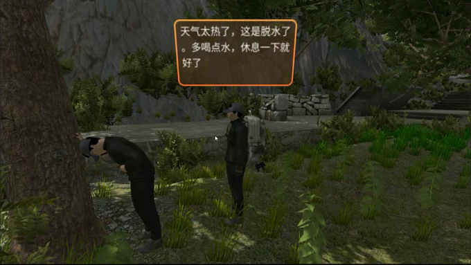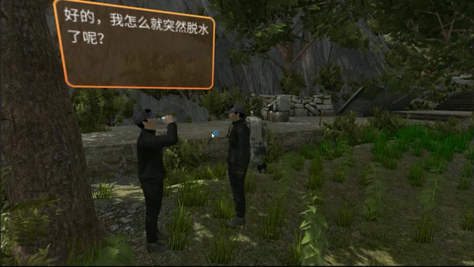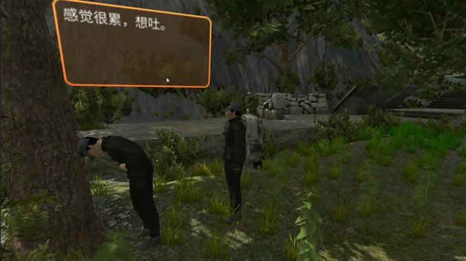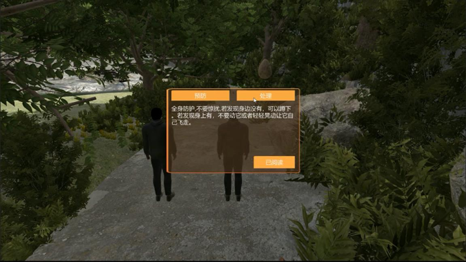 点击已阅读按钮后,虚拟人物继续往前走,触发被蛇咬伤任务点;