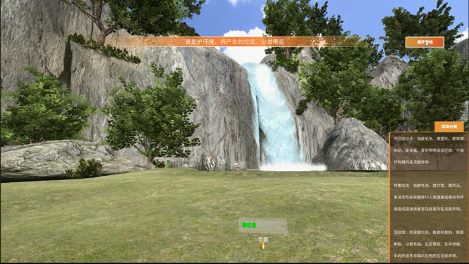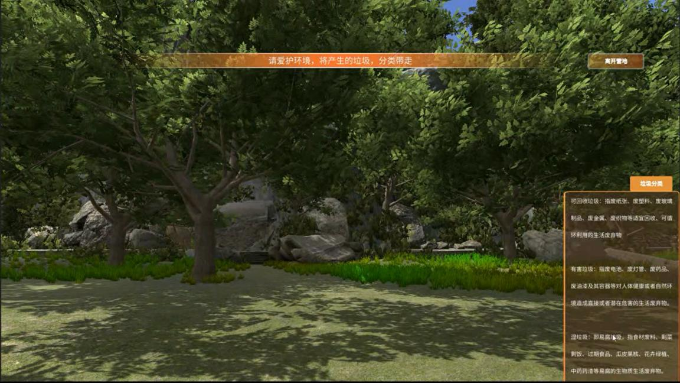 所有垃圾分类完成后,点击离开营地按钮,结束学习模块的学习;