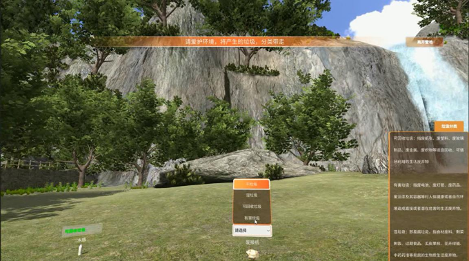 用户点击地面上的垃圾,对垃圾进行分类,选择正确显示绿色,选择错误显示红色;