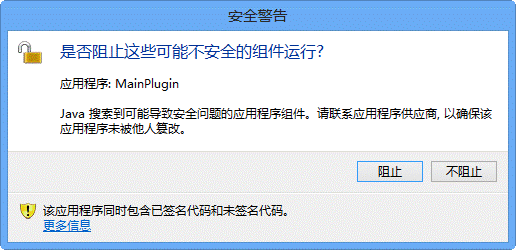 答:出现这种情况的原因是JAVA运行环境从 Java SE 7.0 Update 50 及以上版本开始提高了安全级别。有如下两种解决方法: