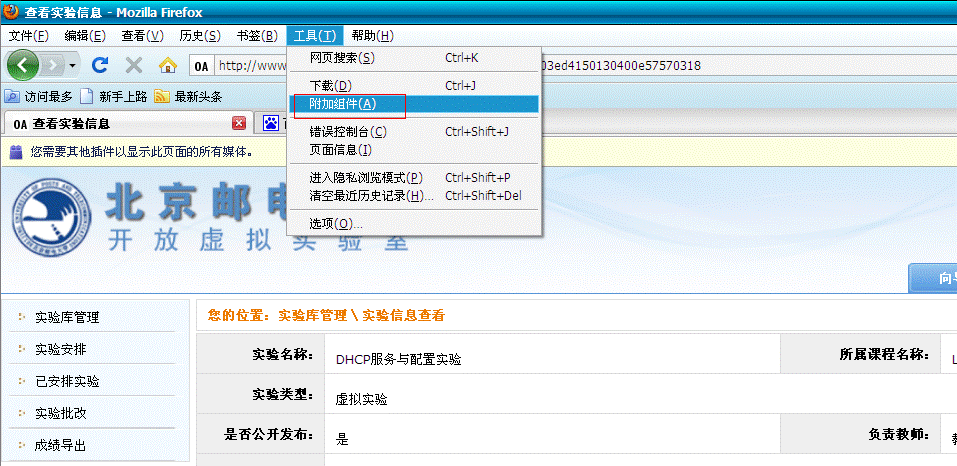7、在用火狐浏览器时,仿真实验台有时会出现如下提示框同时,下载完插件还是同样显示提示框,