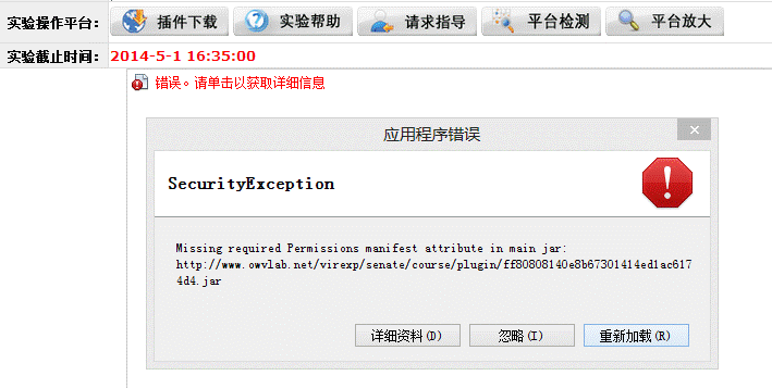 8、进入虚拟实验平台页面时,平台出现如下页面错误,无法进行实验,是怎么回事?